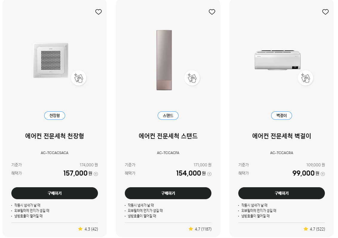 여름 이벤트로 에어컨 청소를 40% 할인하는 등의 혜택도 제공하고 있어요.